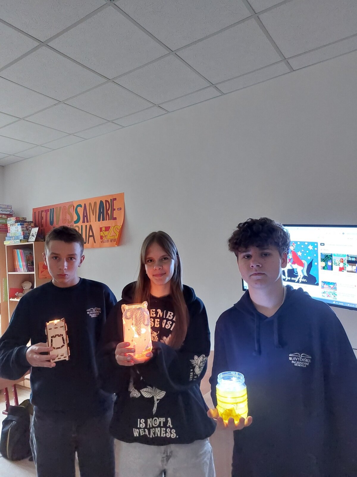 Ši graži vaikų šventė tradiciškai minima ir mūsų mokykloje. Vokiečių kalbos besimokantys 6-10 klasių mokiniai patys pasigamino žibintus, aktyviai dalyvavo viktorinoje St. Martins Quiz, turtino savo žodyną naujais žodžiais, išmoko populiarią dainelę “Ich geh’ mit meiner Laterne”, apdainuojančią geradarį Martyną ir šviesos reikšmę pasauliui, žiūrėjo filmuką apie šv. Martyną ir jo mums visiems neštą žinią: „Kas pasidalija su kitu, tas laimi”. Išrinkome 3 gražiausius žibintus: Lauryno (9b kl.), Rugilės (10 kl.) ir Elisos (8a kl.)