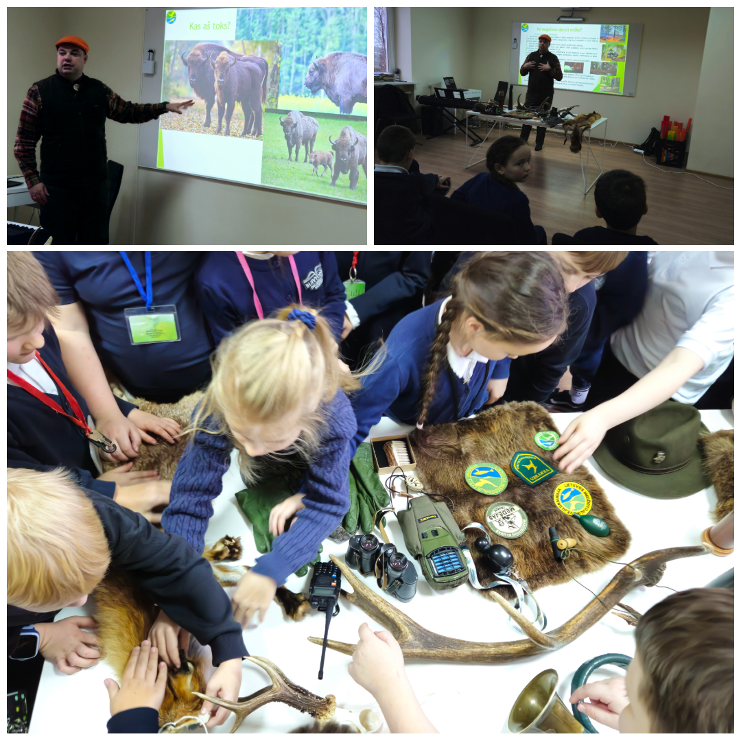 Mokiniai išgirdo naudingų žinių apie Lietuvos miškingas vietas, apie taršą, gyvūnijos įvairovę, meškų paplitimą. Taip pat išgirdo gyvūnų garsus, bei prietaisus, kurie mėgdžioja gyvūnus. Susipažino ir atpažino Lietuvos gyvūnus bei paukščius.