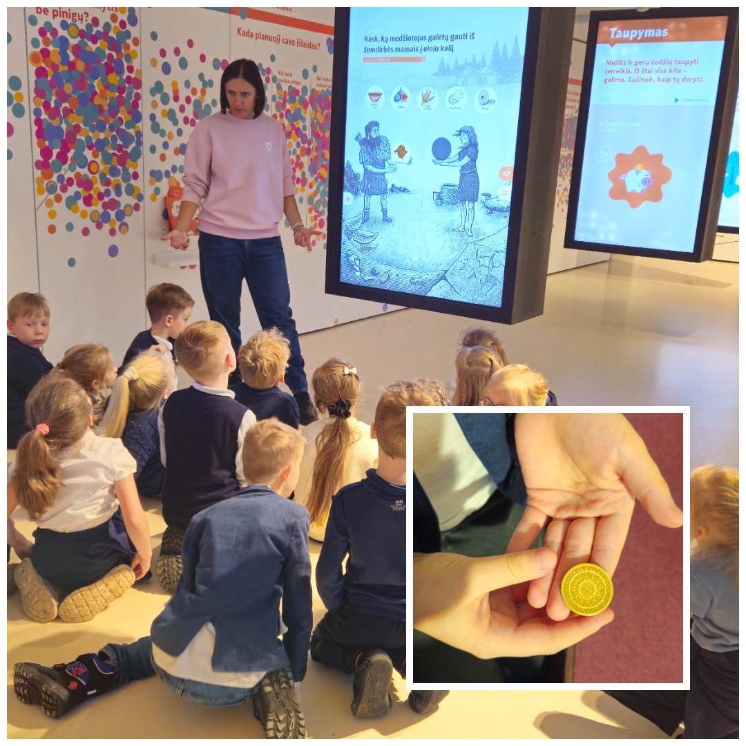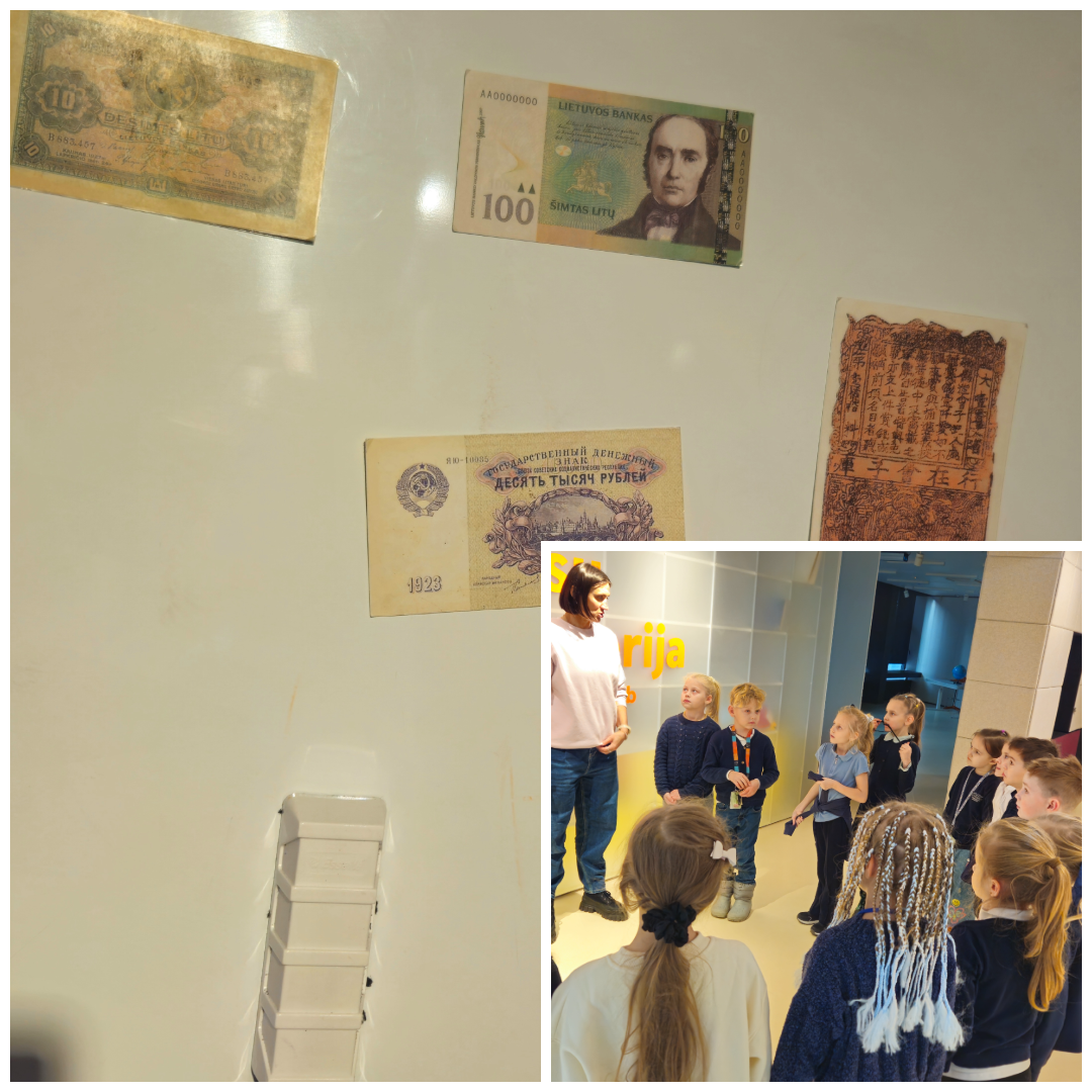 Mokiniai susipažino su pinigų istorija. Laiko mašina nusikėlė prieš 4000 metų ir turėjo galimybę virtualiai keliauti laiku. Edukacijos gidė Jekaterina padėjo suprasti, kam reikalingi pinigai ir kaip žmonės gyveno, kol neturėjo pinigų. Mokiniai sužinojo pinigų atsiradimo istoriją. Turėjo galimybę pačiupinėti senovės monetas, apžiūrėjo skirtingas banknotų kupiūras. O žinioms užtvirtinti žaidė interaktyvų žaidimą.