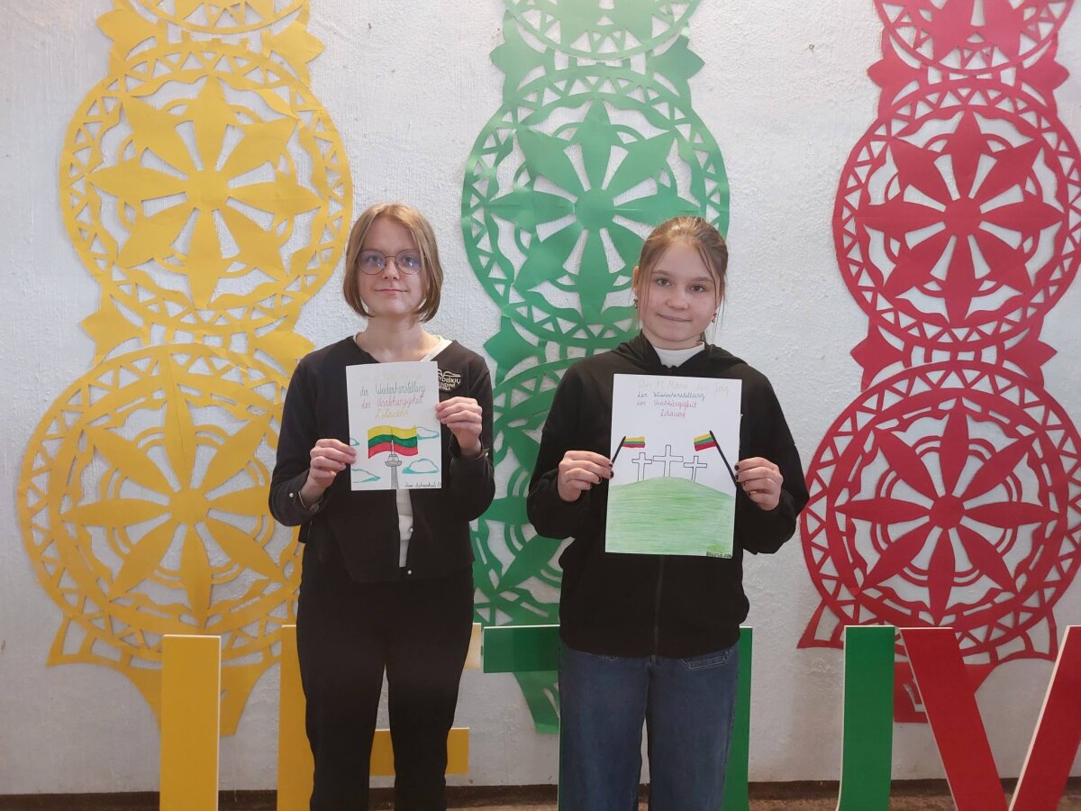 Mūsų mokyklos vokiečių kalbos besimokantys 6-10 klasių mokiniai savo piešinėliais sveikina mūsų Tėvynę Lietuvą su Kovo 11-ąja – Lietuvos nepriklausomybės atkūrimo diena. Laisvė – mūsų širdyse ir darbuose.