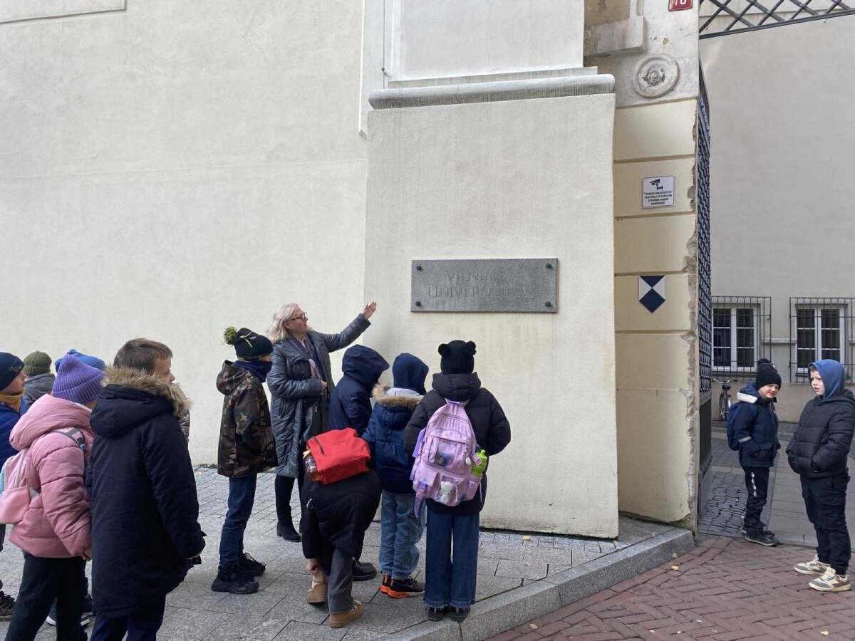 Spalio 22 d. 2B klasės mokiniai lankėsi Vilniaus universitete. Antrokai apžiūrėjo Vilniaus senamiestyje esančius Vilniaus universiteto pastatus-rūmus, kurių amžius 450 metų. Antrokai sužinojo, kad Universitetas - tai aukštoji mokykla, kurioje mokosi studentai baigę mokykloje 12 klasių ir gauna bakalauro arba magistro išsilavinimą. Mokiniai lankėsi Astronomijos kieme, kur įsikūrusi observatorija, lankėsi Simono Daukanto kiemelyje ir sužinojo apie įžymius Lietuvos žmones, kurie mokėsi Vilniaus universitete. Antrokai atliko praktinę užduotį, rasdami ir knygelėje žymėdami svarbias universiteto vietas, tokias kaip Stepono Batoro (Universiteto įkūrėjo) paveikslas. Apsilankę šv. Jonų bažnyčioje, mokiniai grįžo į mokyklą.